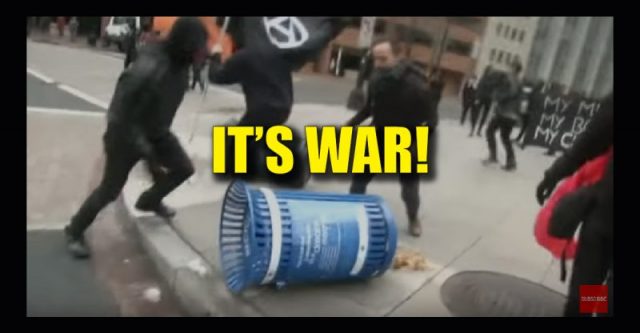 Logica s-a înlocuit cu sentimente. ANTIFA iubește protestele violente împotriva naziștilor imaginari și iubește să lovească coșuri de gunoi.
