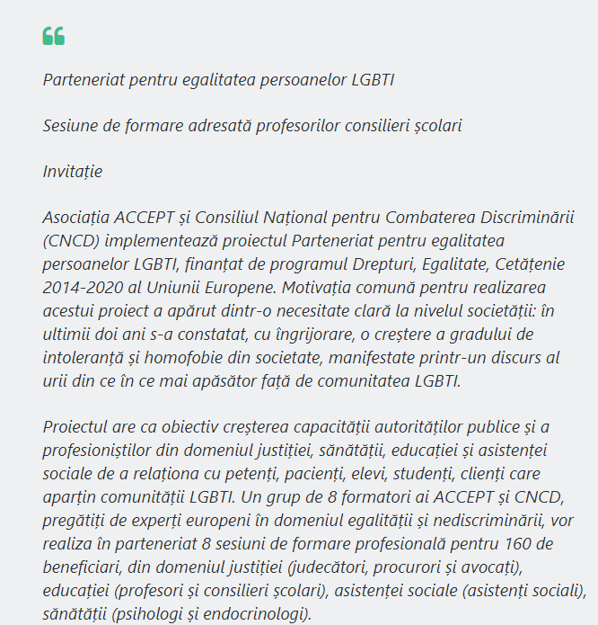 Uniunea insalubră dintre CNCD și ACCEPT relevă natura ideologic subversivă a instituției. Protejarea agendei homosexuale și limitarea discursului conservator în spațiul public este scopul nedeclarat al acestei uniuni.