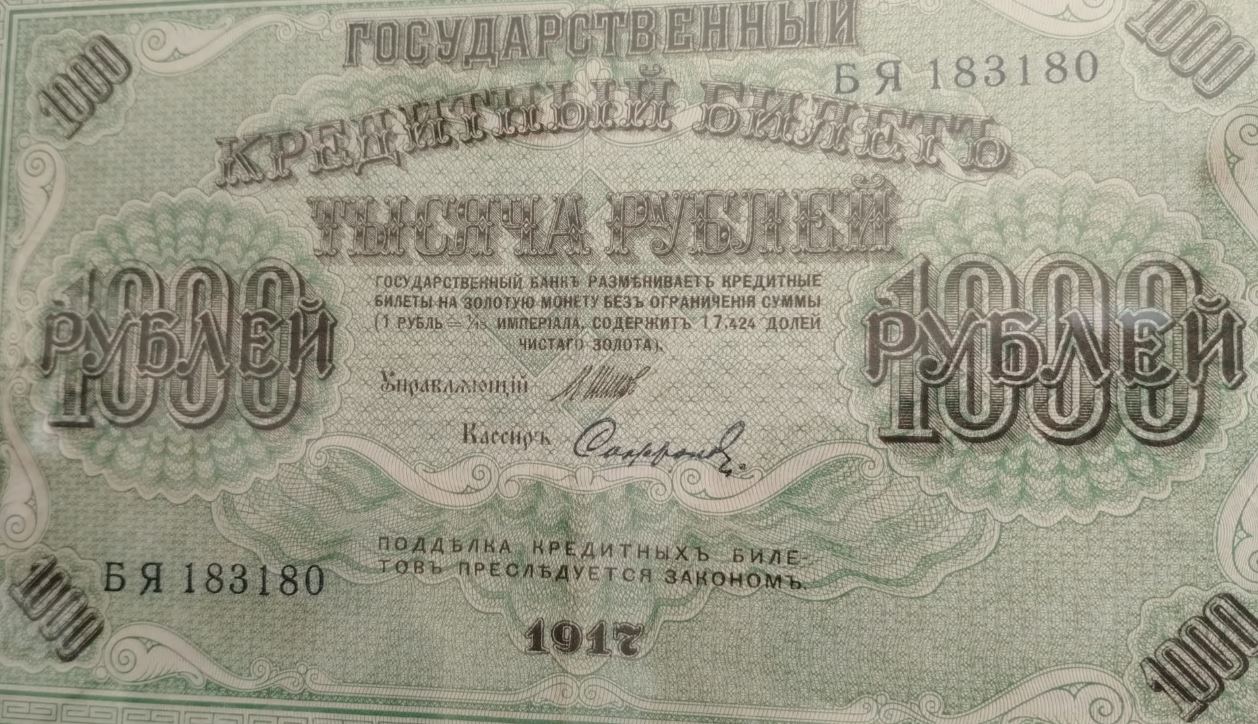 Bancnotă emisă de guvernul provizoriu de la 1917. Zvastica ocupă un loc central.