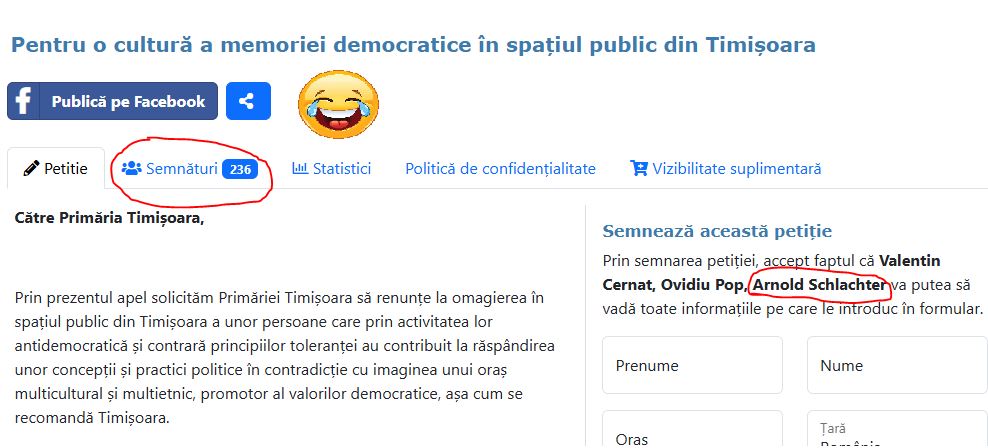 Și petiția aia fantomă abia a fost semnată de 235 de amețiți în decurs de aproape un an și jumătate. Deci e clar că petiția aia trebuie ignorată. Dar cei de la publicația progresisță Scena 9 se revoltă. Cică “Primăria Timișoara continuă să amâne luarea unei decizii legate de numele străzilor care comemorează figuri asociate extremismului”.