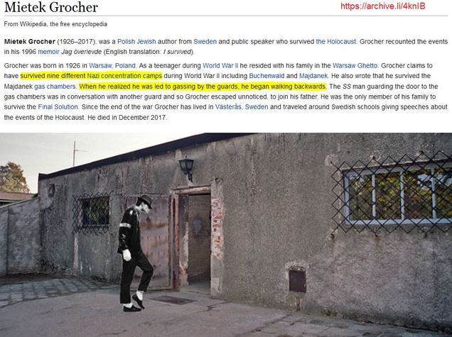 A fost și el gazat de două ori de Mengele însuși și cumva a supraviețuit sau a făcut schema Michael Jackson?