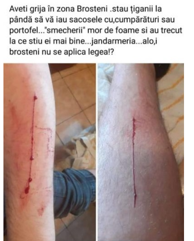 „E regretabil că domnii de la poliție au putut spune așa ceva. Fapta reclamată e cât se poate de reală, iar fotografiile adevărate. Băiatul nostru, de 21 de ani, a fost tâlhărit pe stradă. Tăiat cu un cuțit și deposedat de 10 lei, atât cât avea în buzunar. Băiatul a fost și la medic, i s-a dat concediu medical. Am fost de acord să ștergem, la rugămintea polițiștilor, postarea de pe facebook, dar acum să se spună că am mințit, că ni se face dosar penal, e strigător la cer”.