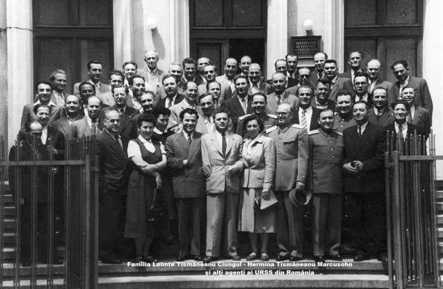 Foto de pe treptele „Institutului de Istorie a Partidului”: în centru tronează Ciungul – Leonte Tismăneanu, alături de soția sa, Hermina, care îl are în spate, cu gura mare, pe cumnatul său, Bibi/ Meir Mihail Rosner/ Boico, soțul Christinei Bianca Boico, de profesie securist, respectiv general în Securitatea bolșevică, nimeni altul decât unchiul la fel de celebrului „liant natural” între Rusia și SUA, Vladimir Tismăneanu.