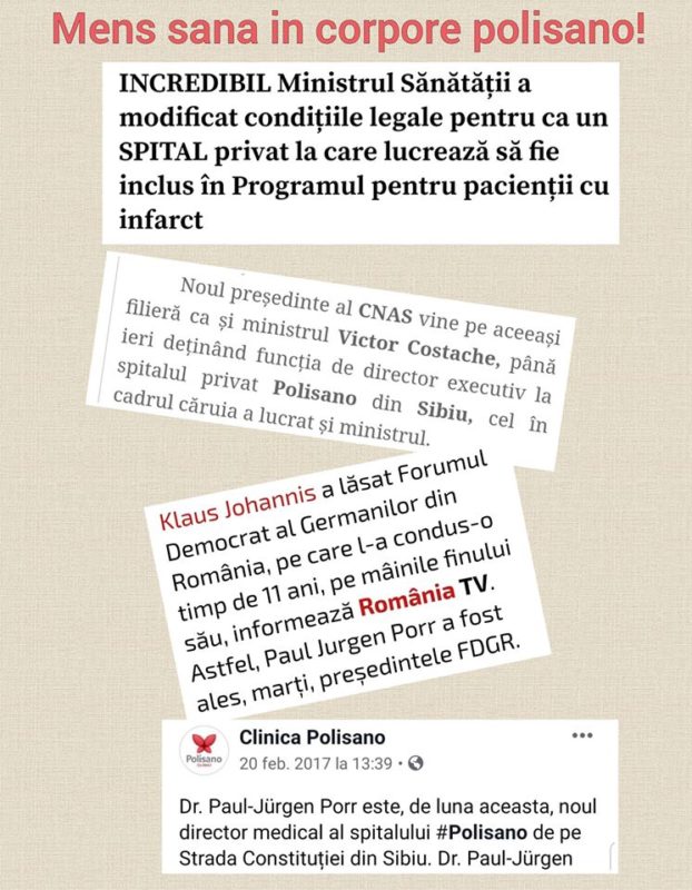 8. Pe 11 noiembrie 2019, ministrul Sănătății și angajatul POLISANO Sibiu, Victor Costache, o propune președinte la Casa Națională de Asigurări de Sănătate pe Adela Cojandirector executiv la… ați ghicit: POLISANO Sibiu.