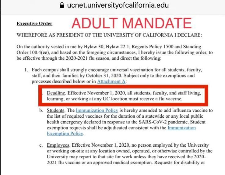 Este vorba de un ordin executiv în cadrul universității din California, care impune vaccinarea obligatorie pentru studenți. Probabil se poate contesta în isntanță, dar semnele nu sunt deloc bune.