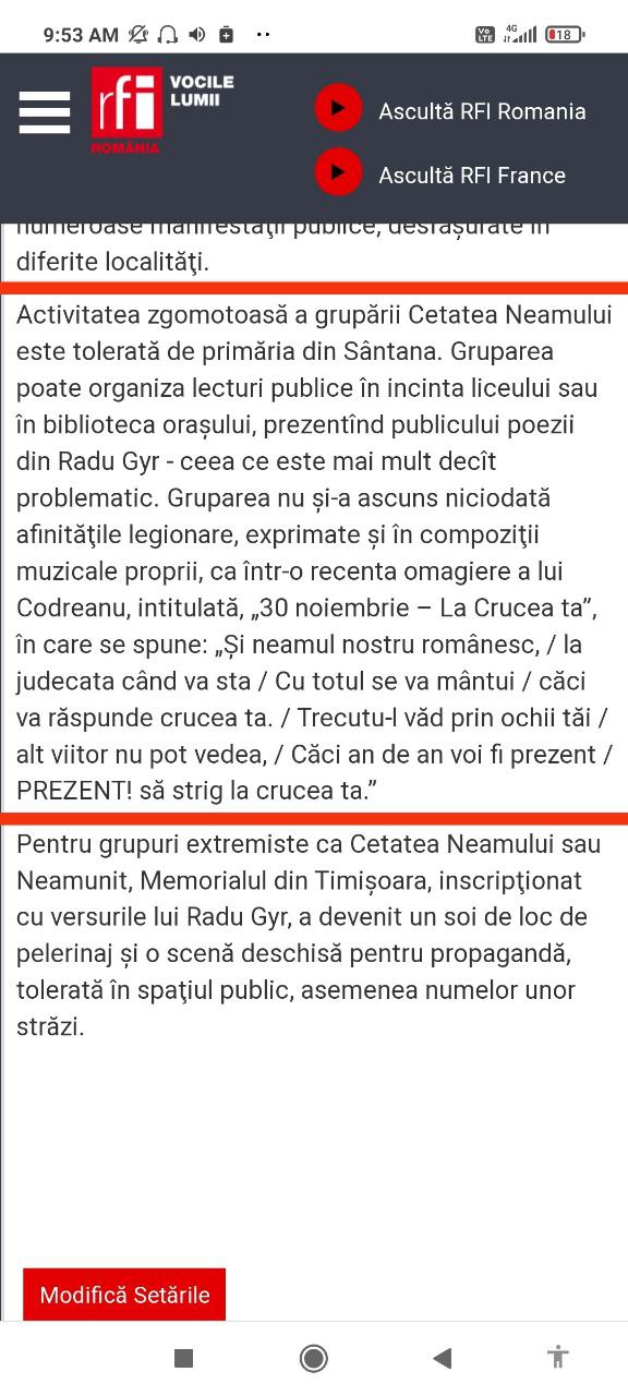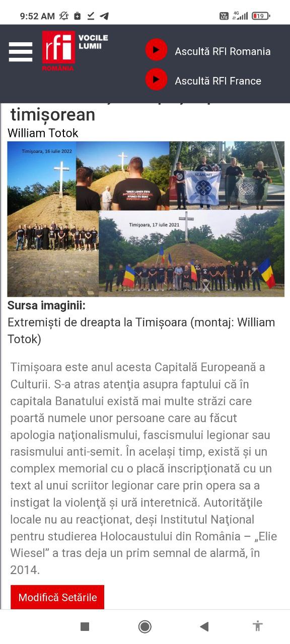 Institutul Elie Wiesel și acest bufon Totok (observați că sunt toți români) cer direct primăriilor românești sa schimbe numele străzilor, numele liceelor, arată cu degetul patrioții români marcându-i ca pericolulosi, extremiști, pentru faptul că citesc poezii și cântă versuri frumoase care vorbesc despre trecutul adevărat al țării noastre.