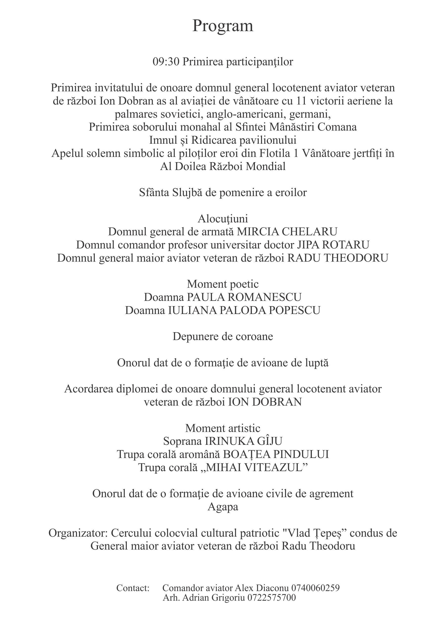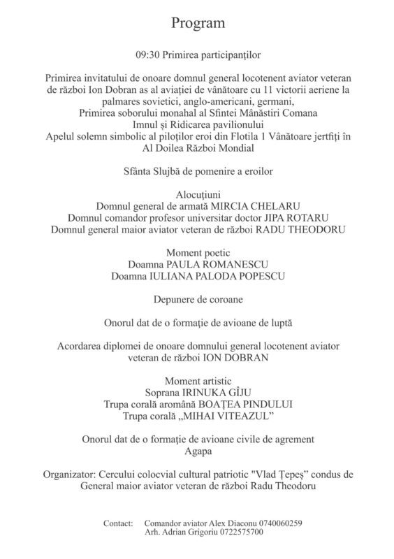 Sâmbătă 8 iunie va avea loc ZIUA EROILOR la Mănăstirea Comana, jud. Giurgiu!